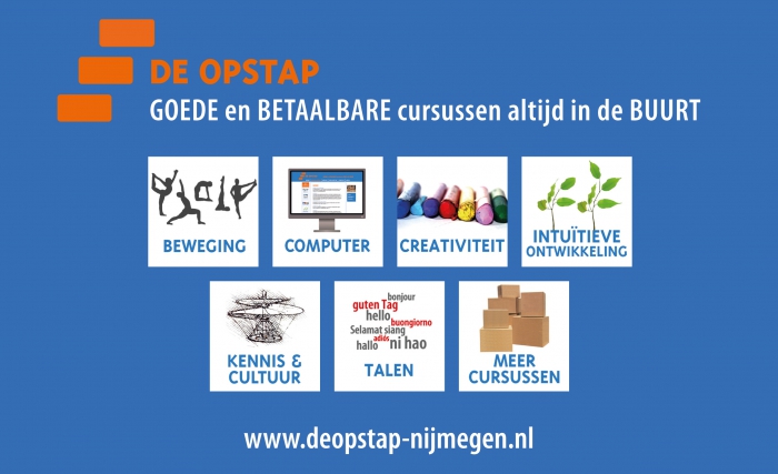Wij bieden over het hele jaar 240 cursussen aan op diverse gebieden: taal, yoga, beweging, ontwikkeling, creativiteit, kunst, kennis en cultuur, muziek, computer.