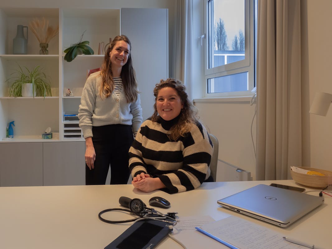 “We zijn een ouwe rot in een modern jasje. We bieden volledige zorg binnen onze praktijkmuren, prikken zelf bloed, maken op indicatie hartfilmpjes of groei-echo's van de baby. Onze cliënten komen uit Nijmegen-Oost, waaronder het asielzoekerscentrum, Lent en de dorpen in de Ooijpolder. We hebben veel aandacht voor de beleving rondom een zwangerschap en bevalling en betrekken partners en gezin er actief bij. Bij de geboorte vormen we één team met de ouders en de kraamverzorgende, soms een verloskundige in opleiding. En desnoods trekken we de buurvrouw aan haar jas als we extra handen nodig heb