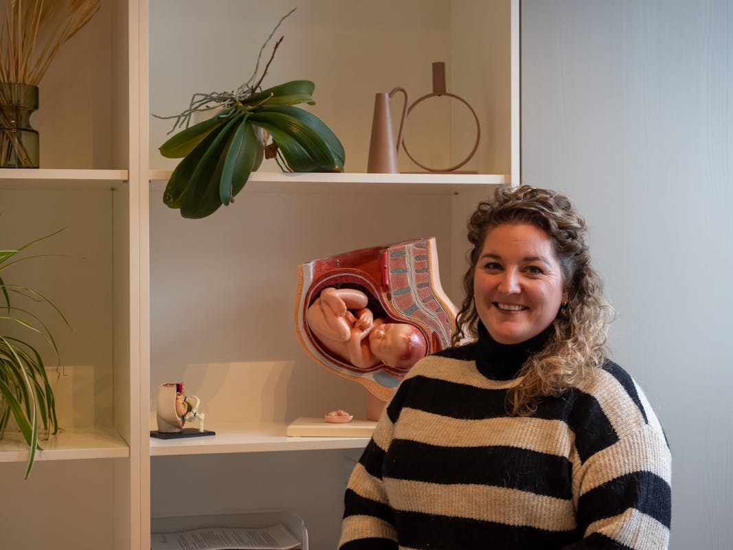 “Als kind was ik al gefascineerd door zwangerschap. Toen mijn buurmeisje een zusje kreeg, vertelde zij mij over de verloskundige: er was dus een beroep dat zich hiermee bezighield! Het heeft me niet meer losgelaten en na een omweg via Pedagogische Wetenschappen ben ik Verloskunde gaan studeren. Wat mij drijft, is het opbouwen van de relatie met aanstaande gezinnen en het begeleiden van hen naar het ouderschap. De transitie van prille zwangere naar een oermoeder in het kraambed en uiteindelijk naar een draaiend gezinsleven, dat is magisch.”