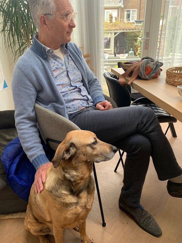 En zo geschiedde. Er werd contact gelegd en niet veel later ontmoetten Jos en Jikke Hol-Marek - het baasje van Rosie - elkaar. Ze wisselden verhalen en foto’s uit en ontdekten allerlei overeenkomsten. Maar het mooiste moment? Dat was toch wel de klik tussen Jos en Rosie zelf. “Ze hebben heerlijk zitten knuffelen”, vertelde haar baasje lachend. Binnenkort gaan ze zelfs samen wandelen.