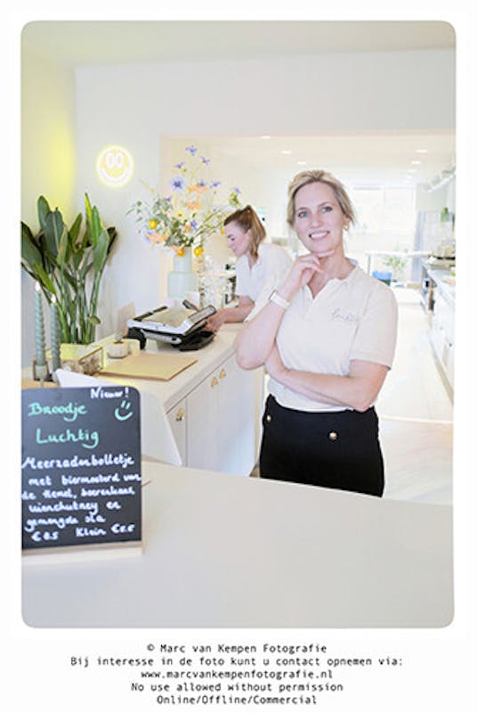 ''Ik ben opgegroeid in een dorp in Brabant, Als kind kon ik al flink genieten van lekker eten. En als puber leerde ik veel in een kaas- en delicatessenwinkel in Tilburg. Na de middelbare school ben ik orthopedagogiek gaan studeren in Nijmegen en op zaterdag werkte ik bij Kaaswinkel De Wit in de Lange Hezelstraat. Daar is de kiem gezaaid voor duurzaam, lokaal en gezond eten. Na mijn studie ben ik in Nijmegen gebleven en vond een baan bij Koninklijke Visio in de Javastraat, een instelling voor mensen met een visuele en ernstig verstandelijke beperking. Hier heb ik bijna vijftien jaar met veel plezier gewerkt als coach en adviseur bij diagnostiek en behandeling. In de coronaperiode zat ik noodgedwongen veel thuis te werken, en hoewel ik altijd met veel plezier bij Visio heb gewerkt, bemerkte ik toch bij mezelf dat ik niet meer zo gemotiveerd was. Tijd voor een nieuwe uitdaging. In mijn eigen keuken startte ik foodbedrijf Luchtig. Ik bedacht de wandellunch, een handzame lunch als middel om mee te wandelen. Het concept sloeg aan, het bedrijf groeide zo snel dat mijn keuken te klein werd. In september 2024 opende ik de lunchwinkel in de Professorenbuurt.''