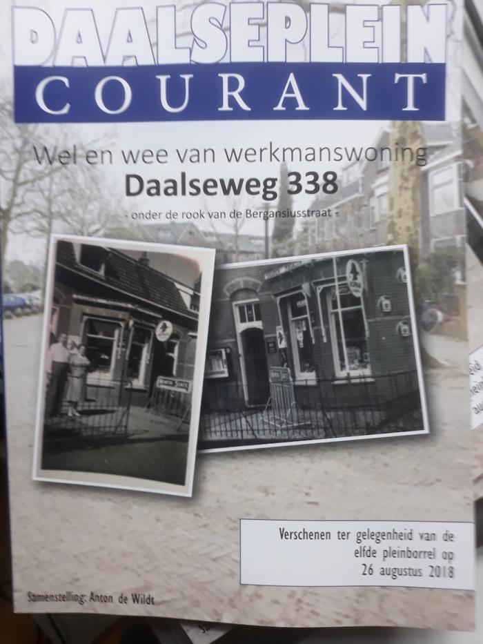 ![]() De huizen in de Bergansiusstraat in de wijk Hengstdal zijn ruim 100 jaar oud. De straat zelf, gelegen nabij het Daalseplein bij Café Jos, nog ouder. Elk jaar houden de Daalsepleinbewoners een pleinborrel. En ook al bijna elk jaar schrijft pleinbewoner Anton de Wildt een boekje. Altijd over een pleinaangelegenheid. En dat deelt hij dan uit aan de aanwezigen. Dit keer gaat het boekje over werkmanswoning Daalseweg 338, gelegen op de hoek Daalseweg-Bergansiusstraat. Die woning is tegelijkertijd met de huizen in de fraai glooiende Bergansiusstraat gebouwd. Bijna de helft van het 70 pagina’s tellende boekje besteedt aandacht aan het ontstaan van de Bergansiusstraat. En aan de bouw en de huurders van de 25 woningen. En tevens aan de coöperatie die in de beginjaren een centrale rol speelde. Er zijn voor de liefhebbers nog exemplaren van dit boekje te bestellen. Het is op A4-formaat, in kleur, rijk geïllustreerd met foto’s en plattegronden, en op glanzend papier gedrukt. Info: |