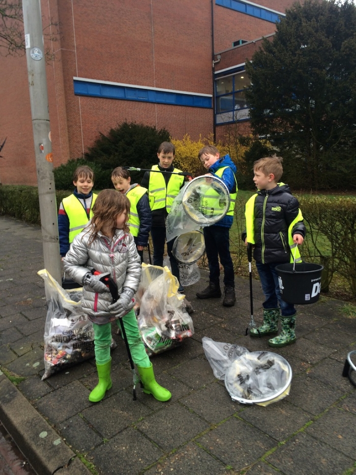 In de regen heeft, op zondag 29 maart, een team van zes buurtrangers in totaal zes grote zakken zwerfafval 'gescoord'!
