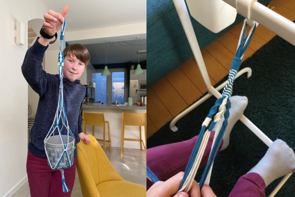 Camiel: "Ik heb een mooie (al zeg ik het zelf) plantenhanger met de techniek macramé gemaakt en ik heb fotooooooooos"
