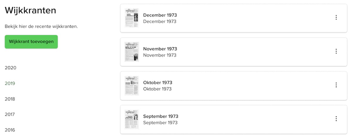Overigens, bijna alle exemplaren... want een enkele Wijkkrant ontbreekt helaas: zo’n twintig stuks, allemaal gemaakt voor 1-1-2009. Eentje uit het jaar 1972, twee uit 1974 en alle andere exemplaren uit de jaren 1993 t/m 2008.