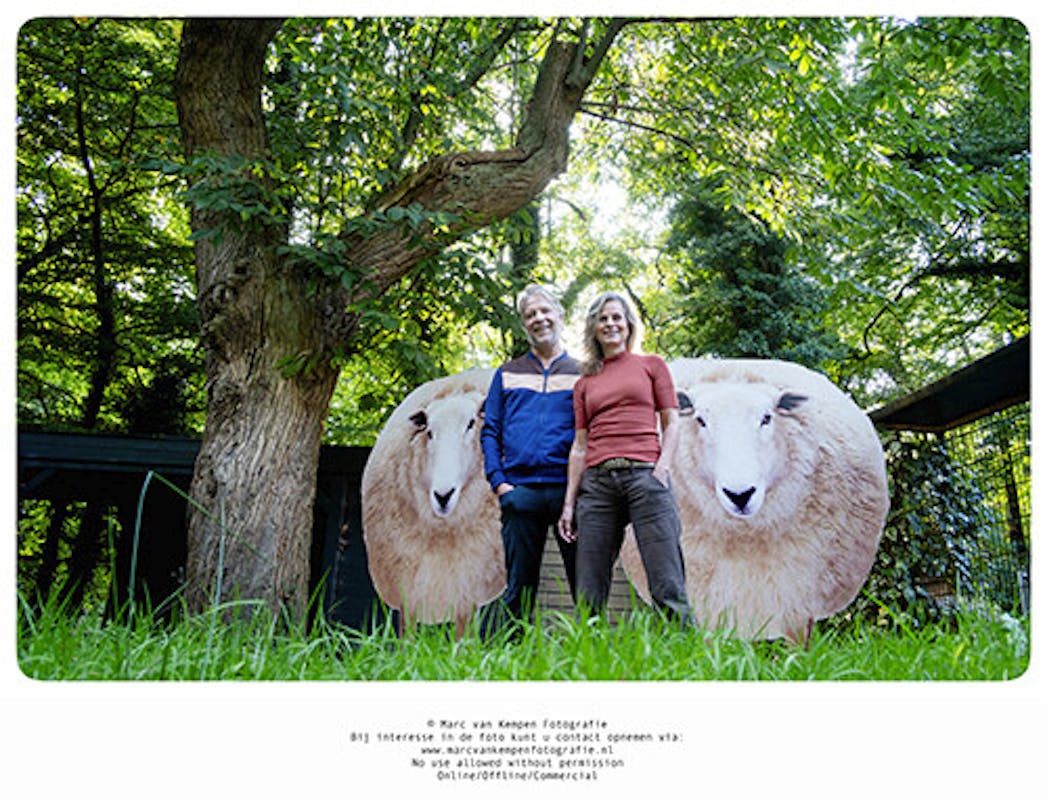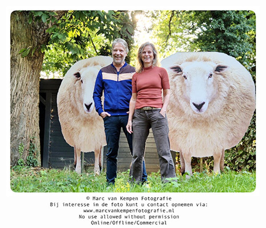 Iedereen die wel eens over de Bosweg fietst, kent ze: de schapen in de voortuin van Angèle en Perry. Geen levende weliswaar, maar des te opvallender. Het zijn namelijk twee enorme foto's van schapen, recht van voren genomen. Als je langsloopt, lijkt het alsof ze je blijven aankijken en zelfs een stukje met je meelopen.
