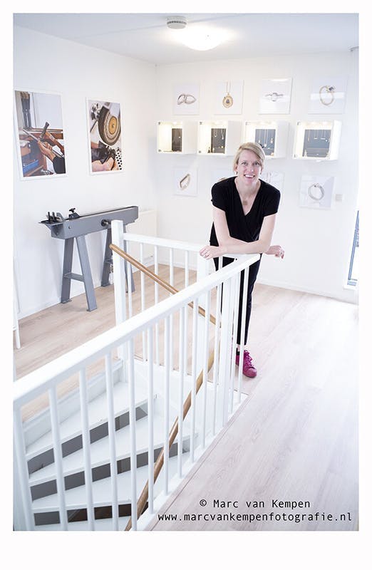 "Op de middelbare school moest ik een beroepskeuzetest doen en toen riep ik al: Ik wil edelsmid worden, maar dat werd me afgeraden omdat ik vwo deed en edelsmid een mbo-opleiding is. Zodoende vertrok ik naar Delft voor de studie Industrieel ontwerpen aan de Technische Universiteit. Tijdens die studie leerde ik welke betekenis producten voor mensen kunnen hebben; zo kan een product naast functionaliteit ook emotionele waarde hebben en dat sprak me aan. Na drie jaar kwam ik erachter dat ik toch het praktische werk miste; iets tastbaars maken met mijn handen. Ik ben toen alsnog, in deeltijd, de opleiding voor goudsmid gaan doen. Uiteindelijk heb ik beide studies afgerond en dat komt goed van pas. Bij industrieel ontwerpen ligt de focus op conceptdenken en dat gebruik ik bij mijn opdrachten."