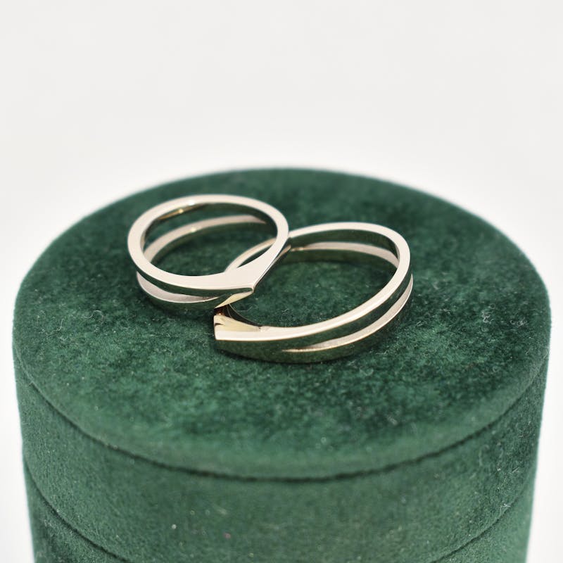 "Om te beginnen mijn stijl. Die is redelijk grafisch, strak, geometrisch en origineel. Maar het belangrijkste is dat ik mijn klanten meeneem in het proces en dat doen niet alle edelsmeden. Ik laat ze bij elke stap zien waar ik mee bezig ben; de papieren schets, de 3D-tekening en het proefmodel. Pas als de klant helemaal tevreden is over het ontwerp, ga ik het uiteindelijke sieraad maken. Ik zie mijn klanten meestal drie keer voordat het product af is. Veel collega's zien hun klant één keer omdat zij werken vanuit een bestaand model."