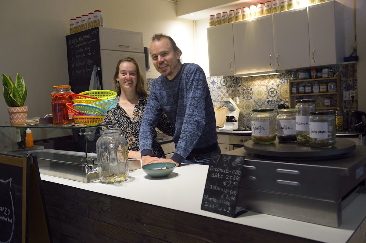Nijmegen-Oost barst van de kleine ondernemers. Elke maand stellen we aan een van hen vijf vragen. Deze keer spreken we Elke Linders en Polle Aubert van humusbar Garbanzo aan de Van Oldenbarneveltstraat 63A in Bottendaal.
