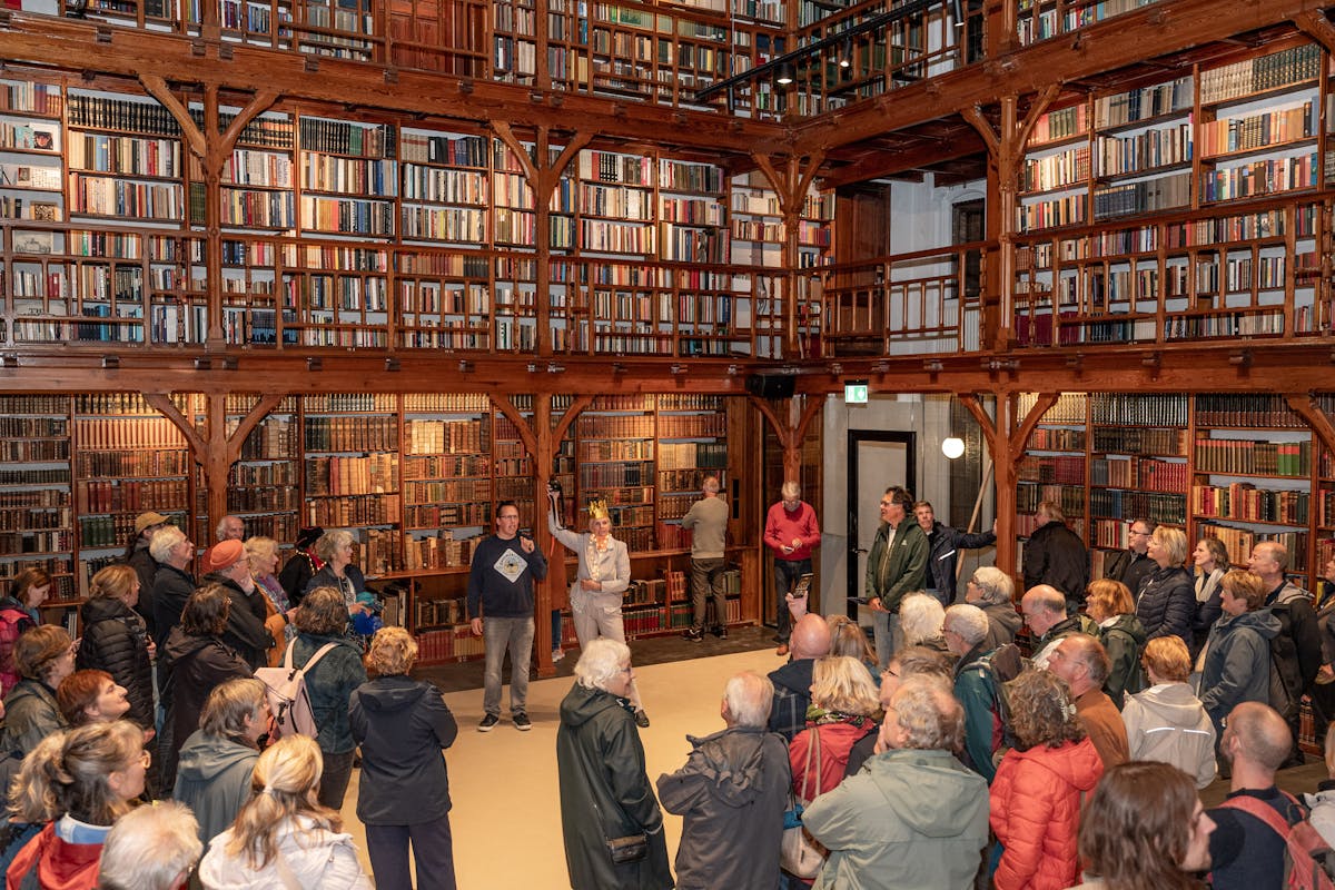 Nog imposanter is de bibliotheek, stijlvol gevuld met bijpassende oude boeken. Je waant je in de tijd dat de paters Jezuïeten hier de scepter zwaaiden en de vrome student zich verdiepte in goed katholieke lectuur.