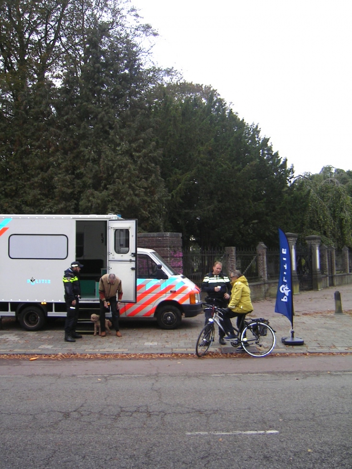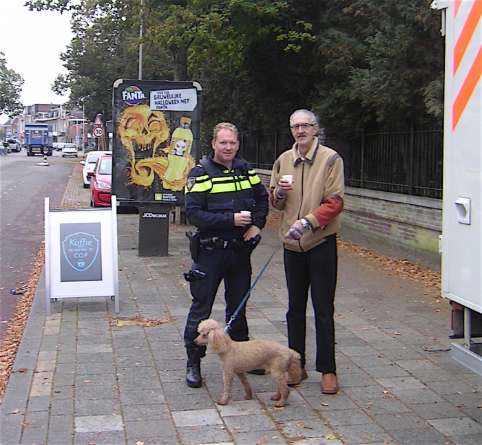 We troffen bij Jeroen en z'n collega onder andere buurtbewoner Harry met z'n hondje Eros. (Een toepasselijke naam overigens, want Eros schijnt als superdekhond over heel Europa ontelbare nakomelingen te hebben...)