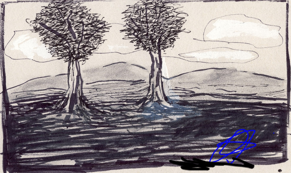 John Kranen tekent op bierviltjes (bierviltjes? jaja! bierviltjes); materiaal: potlood, type-ex, viltstift, balpen; onderwerp: fantasieportretten en non-figuratieve landschappen.