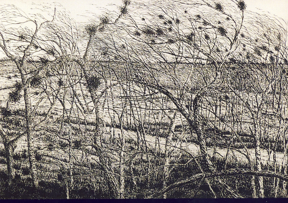 John Hartjes is etser, met een voorliefde voor landschappen en bomen; sommige werken worden levensgroot uitgevoerd.