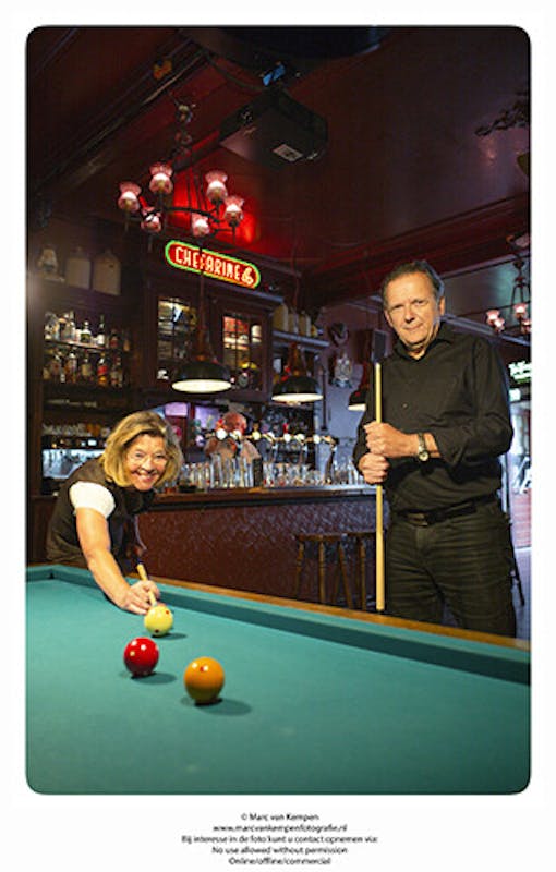 Melita: “Ja, ik wilde Nijmegen en zijn inwoners beter leren kennen. En de sfeer in ’t Haantje, met dat mooie biljart, sprak mij bijzonder aan. Dat biljarten uit mijn jeugd kwam weer boven drijven en ik besloot destijds een oproep in de Wijkkrant te plaatsen voor een biljartmaatje. Na een paar weken kreeg ik zowaar een reactie: Harm (zie foto) reageerde en toen hebben we in ’t Haantje afgesproken. Spannend. Ik kwam daar op het afgesproken tijdstip en iemand stond al klaar bij het biljart, dus ik dacht: ‘Dat zal ‘m wel zijn’. Hij gooide de muntjes er in en zei vriendelijk: ‘Nou, begin maar.’ Om kort te gaan, we hebben de afgelopen jaren vele uurtjes in ’t Haantje doorgebracht. Aanvankelijk nog een keer per maand. Nu hebben we al tijden een vaste wekelijkse afspraak in ‘t Haantje. En nu is mijn gemiddelde al rond de één!