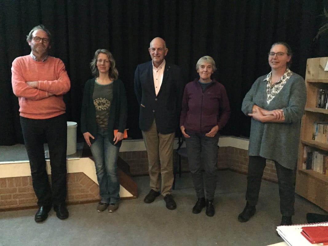 Hieronder het nieuwe bestuur, v.l.n.r. Jan ter Wal, Cindy van Emden, Hans van den Bosch, Rolia Wiggelinkhuijsen, Mieke van den Hengel