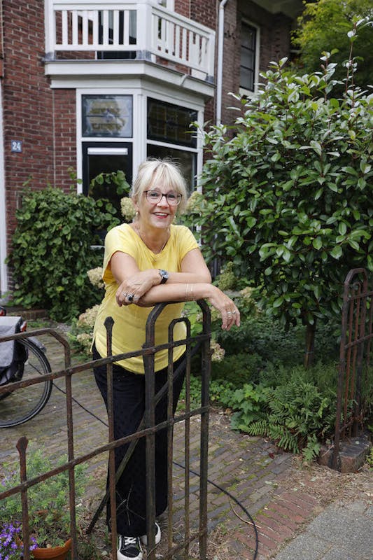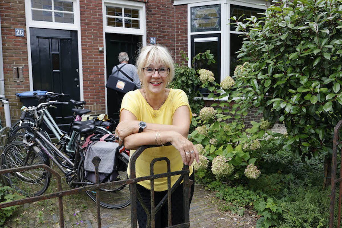 "Toen we hier kwamen wonen, was onze 'oudste' net jarig en vierde haar verjaardag tussen de verhuisdozen. Niet dat ze daar iets van heeft mee gekregen, maar daardoor weet ik het nog precies. We kochten een boven- en benedenwoning. Boven woonden toen nog studenten, die langzamerhand allemaal zijn vertrokken. Het was leuk hier want het barstte van de kinderen, die veel samen speelden. We hadden elk jaar een straatfeest samen met de Hobbema-, Breitner- en van Goghstraat. Toen de kinderen klein waren, organiseerden we allerlei spelen met thema's. Dat was altijd leuk. Er wonen nu nog best wat mensen in de straat uit die tijd, maar er komen ook steeds meer nieuwe jonge gezinnen. Ik ben blij dat we geen 'knarrenhof' zijn geworden. Ik vind het wel jammer dat de nieuwe gezinnen de spelen niet hebben over genomen, maar gelukkig hebben we wel nog onze straatborrels. Het is toch een redelijk hecht buurtje. Niet dat we in de zomer allemaal bij elkaar zitten maar er zijn contacten en er is bijvoorbeeld een wandelclubje".
