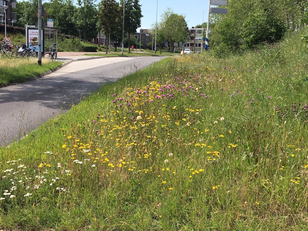 Jarenlang is gazon het streefbeeld geweest voor veel bermen en grasveldjes in de bebouwde kom. De afgelopen jaren is daar langzaam verandering in gekomen. Met ecologisch maaien geven we meer plant- en diersoorten een kans om zich te vestigen, zodat gewone én zeldzame planten een plek kunnen vinden in ons groen. Ook bieden we meer nestgelegenheid en zorgen we voor voedselaanbod voor insecten en soms andere diersoorten.