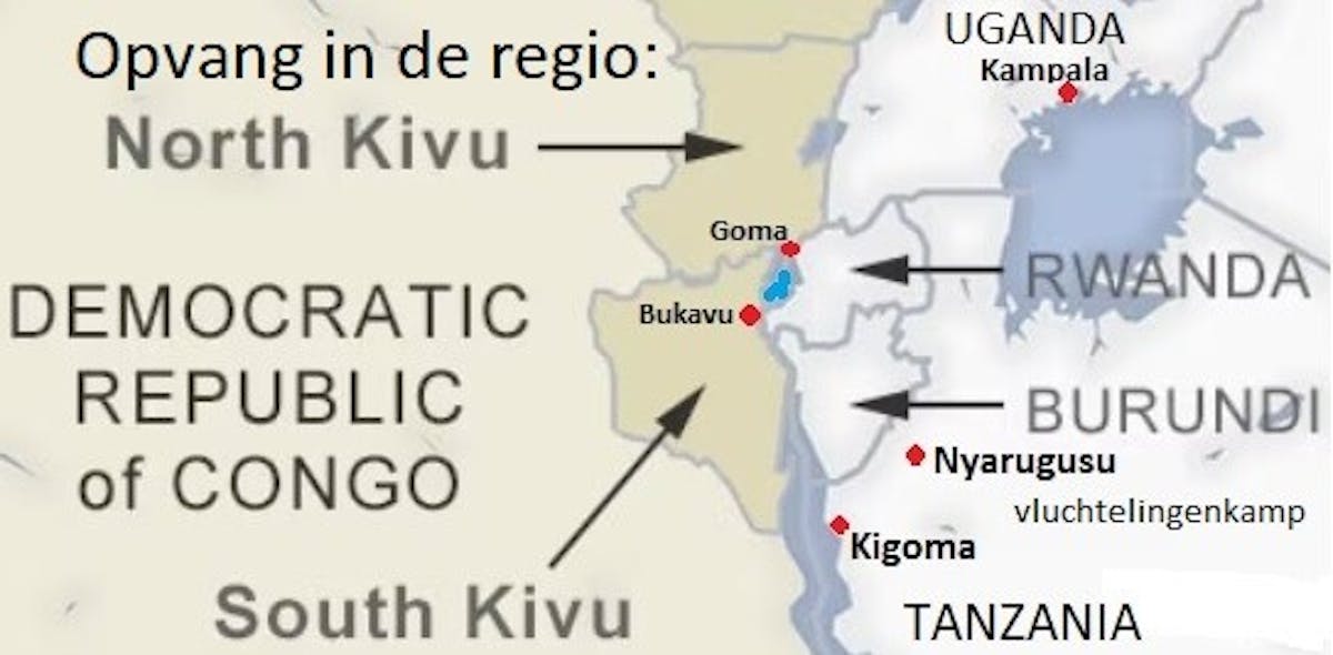 Ze zouden binnen een paar dagen vervoerd worden, naar het grote vluchtelingenkamp Nyuarugusu uit 1996, zo’n 150 km oostwaarts. Daar woont hij sinds die tijd tussen 150.000 andere vluchtelingen uit Congo en Burundi. Een vorm van opvang in de regio, die wordt gesteund door de vluchtelingenorganisatie van de Verenigde Naties de UNHCR.