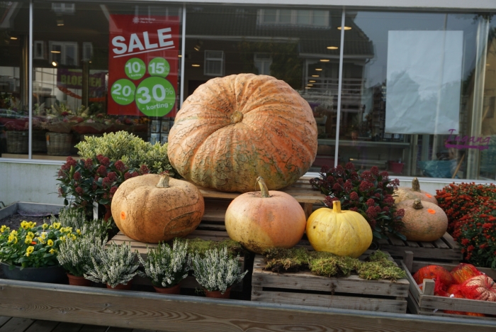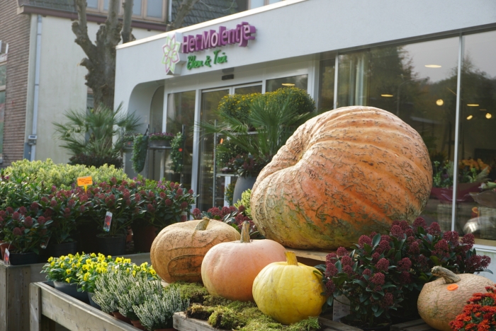 Loop dan eens langs Bloemisterij het Molentje om een gigantische pompoen te bewonderen. Een pompoen in dit formaat zie je maar zelden. Het typeert de herfst.