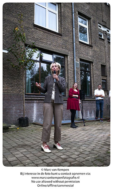 Recent opende Onder de Bomen officieel een nieuwe locatie - aan de Vermeerstraat - van beschermd/begeleid wonen voor mensen die een steuntje in de rug nodig hebben. Het was druk, er waren heerlijke hapjes van Blixem en de medewerker die vroeger kok was, had smakelijke caloriebommetjes gemaakt. Er klonk muziek uit de speakers, er klonken mooie woorden en uiteraard werd er - de naam Onder de Bomen zegt het al - een nieuw boompje geplant in de grote kloostertuin. Een prachtige Japanse sierkers, geplant door wethouder Grete Visser.