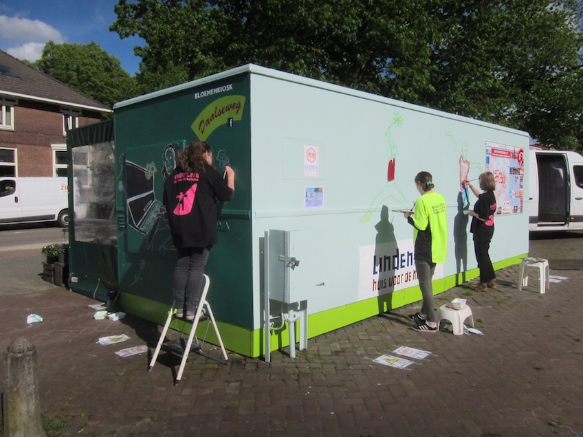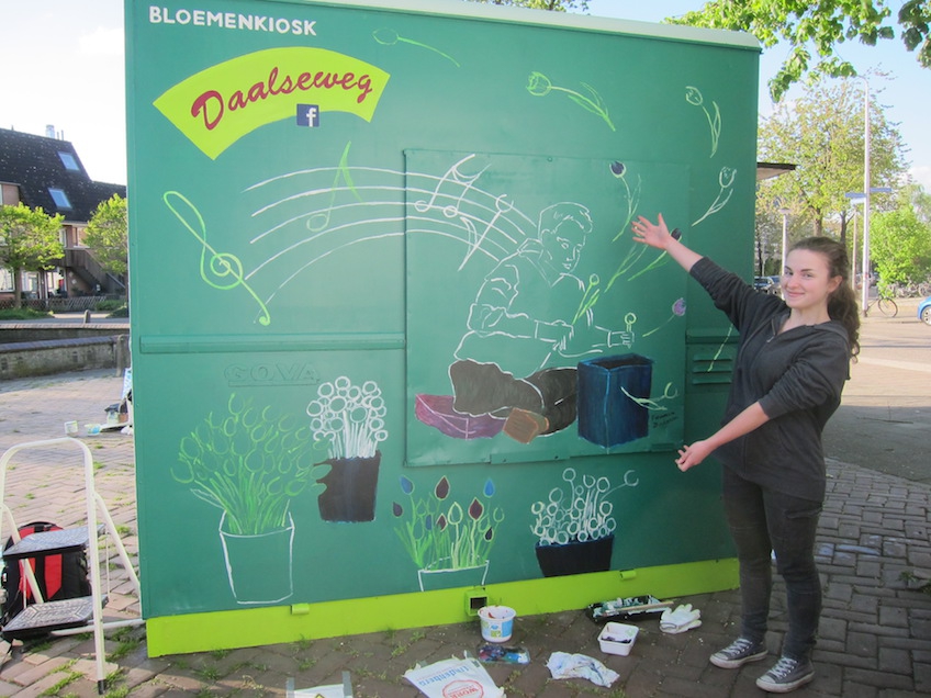 In Oost, op de Daalseweg, zullen de bewoners het al gemerkt hebben. De Bloemenkiosk bij de begraafplaats aan de Daalseweg wordt momenteel beschilderd door jongeren van De Lindenberg, Huis voor de Kunsten. Het zijn jongeren van de Talentschool (dans, toneel, muziek en beeldend).