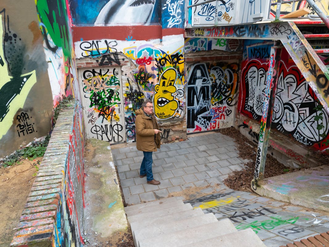 Het pand herbergt negen studio’s, met overal koffiehoekjes op de gang voor de huurders. “De architect heeft het bewust zo ontworpen om te voldoen aan ons concept. Wij verwachten namelijk dat je als huurder iets met een collega-huurder onderneemt op muzikaal gebied. Dat maakt het spannend om hier te werken. Om dat te stimuleren is deze voorwaarde opgenomen in het huurcontract, dat we voor twee jaar aangaan en wat daarna verlengd kan worden. Alle huurders maken een plan en na die twee jaar kijken we of de ambitie is waargemaakt. We hebben een aanjager om dit proces in de gaten te houden”. Het doet mij goed om te zien dat het oude pand behouden blijft voor de muziekwereld dankzij de inzet van veel vrijwilligers en de betrokkenheid van veel Nijmegenaren. En gelukkig is het oude Roosje niet helemaal weg, want de buitengevel, van onder tot boven bewerkt met graffiti, houdt de geschiedenis levend.