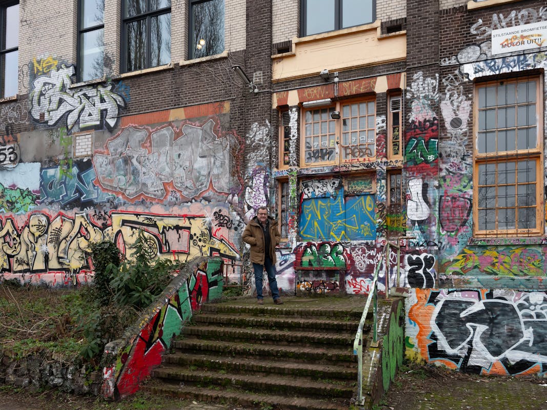 “De gemeente draagt wel gebouwen aan voor bands om te oefenen, maar die gebouwen staan meestal op de nominatie voor sloop en zijn dus altijd tijdelijk. Toen het pand leegkwam meldde De Staat zich als geïnteresseerde om het te gebruiken als oefenruimte. Het oude schoolgebouw werd in beheer gegeven aan SLAK Ateliers, maar die konden het zich niet veroorloven om te kopen. De gemeente wilde er niet in investeren en vervolgens werd het idee geboren om de aankoop en noodzakelijke verbouwing via private financiering te bewerkstelligen. Persoonlijk vond ik het een uitdaging omdat je dan onafhankelijk bent.”