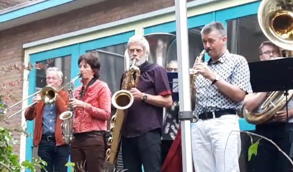 Intussen hoorden ze de swingende klanken van ”ons” veelkoppige feelgood feest en straatorkest Kladderadatch.