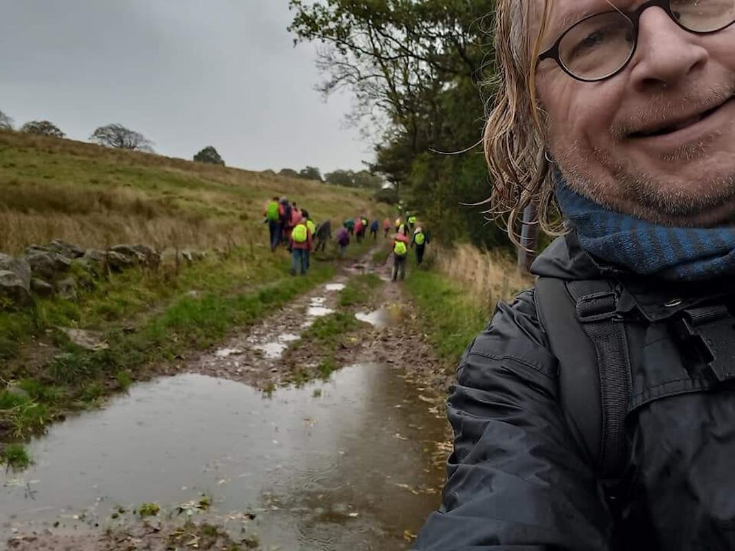 “Ik was van te voren bang dat we over asfalt zouden lopen, maar dat was gelukkig niet zo. We liepen dwars door weilanden, afgelegen dalletjes, bos, prachtige parken en langs oude kanalen die ooit zijn aangelegd om fjorden te verbinden. Naast die kanalen lopen wandelpaden die van oorsprong bedoeld zijn voor paarden die de trekschuit trokken. Het zijn goed beloopbare paden, maar nu stonden ze soms blank door alle regen.” Jeroen laat een filmpje zien waar hij over dit pad loopt en ik moet zeggen dat het meer op een tocht door een ondiepe sloot lijkt dan een tocht over een pad. Maar het kon nog erger: “Er waren plekken, bijvoorbeeld bij tunneltjes, waar we tot onze knieën in het water stonden; maar ondanks alles was het echt mooi, een soort herfstromantiek. We hadden op afgelegen plekken onze theepauze of lunch, zoals bij een crèche, en gelukkig waren de overnachtingen goed geregeld.”