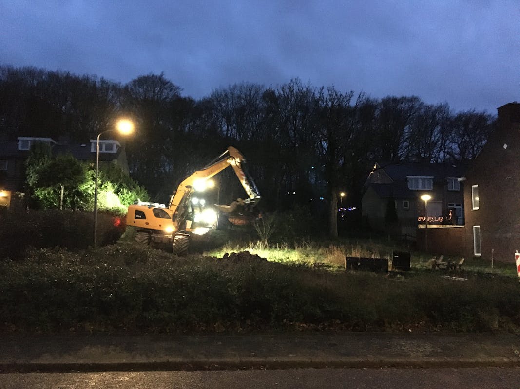 Deze week waren ze 's morgens vroeg begonnen met nieuwe bestrating van de Zilverdenplantsoen.