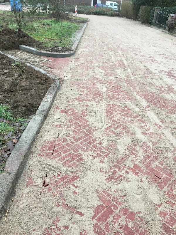 Na een week is het weer begaanbaar. De vernieuwing maakt het een stuk schoner oftewel op zijn Nederlands, een stuk mooier. Er is rekening gehouden met de waterhuishouding, bij veel regen kan het overtollige water het plantsoen in stromen via de openingen in de stoeprand.