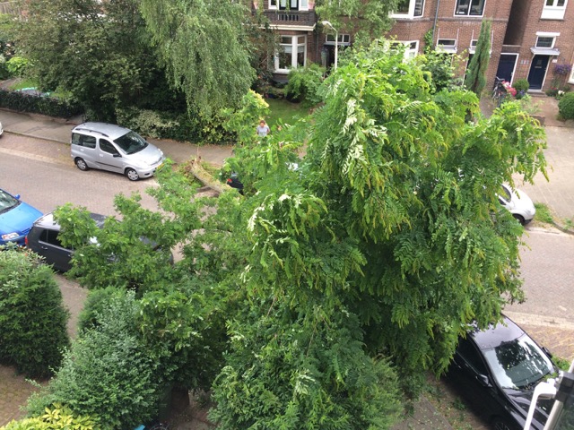 En nu: hoe zou ‘t zijn met de andere 15 acacia's in ons straatje? Prachtige bomen trouwens, die dit jaar nog uitbundiger bloeiden dan anders.