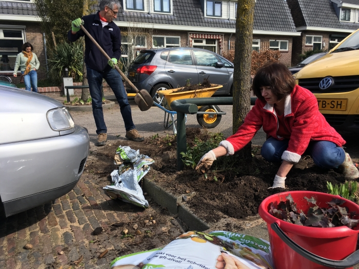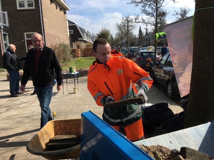 Vandaag was Operatie Steenbreek actief in de Spoorbuurt. Vrijwilligers en medewerkers van Dar ruilden tuintegels voor gratis zwarte grond en een aantal plantjes.