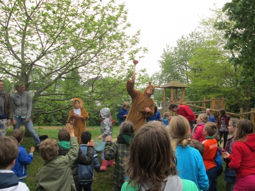 Op 2e Paasdag kwam de Paashaas volgens traditie Groenewoud met een bezoek vereren. Hoewel het weer wat minder was waren er toch veel ouders met kinderen komen opdagen.
