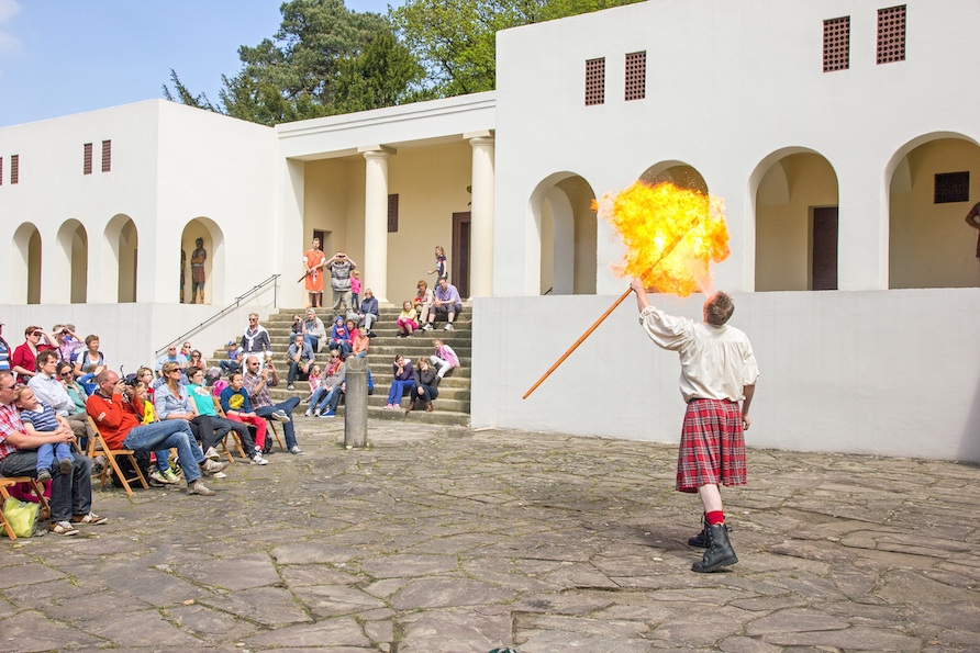 Op 1e en 2e Pinksterdag geven de vuurspuwers ieder uur een demonstratie ‘de kracht van vuur’ o.l.v. Arnout Schouten. Zij geven al jaren demonstraties op midzomer-, midwintervieringen. Om 13.00, 14.00, 15.00 en 16.00 uur op het Plein van Pilatus.