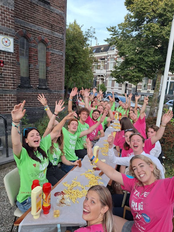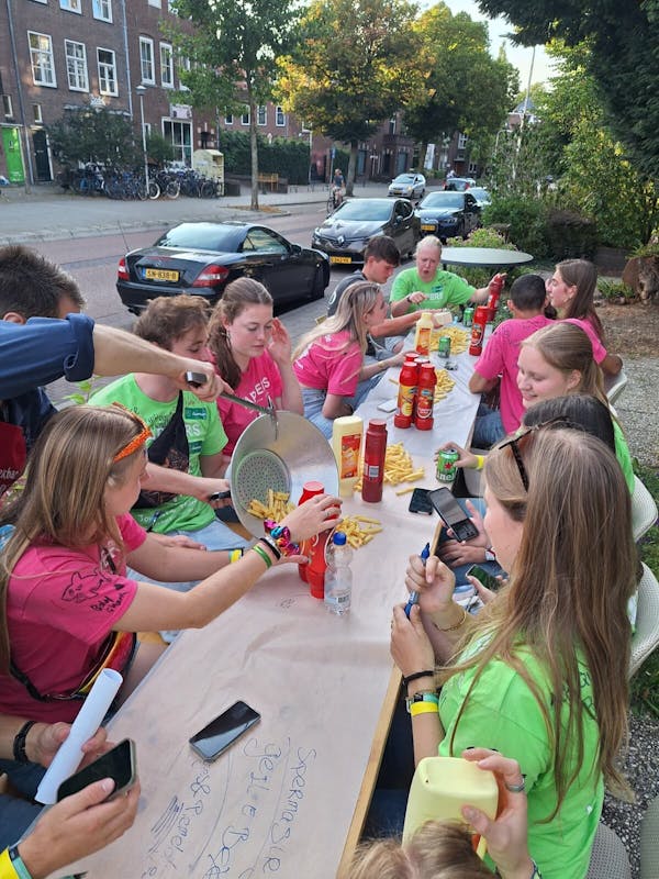 Maar waar laat je zulke aantallen? Het zijn er veel meer dan op het kleine terrasje passen. Laat dat maar aan Veli over, de eigenaar van Snackbar Corry en 'Fritoloog van Nijmegen-Oost’. Hij voert een strakke regie over de avonden van de introductieweek en betrekt zijn ‘buren’ bij deze klus. De knapperige frietjes worden met de saus op de lange tafels gestrooid. Niet alleen bij Corry zelf, maar ook bij de Brouwtoren, Café het Haantje en bij de Lutherse kerk. De ondernemers bundelen hun krachten en zorgen ervoor dat studenten elkaar kunnen ontmoeten bij een typische studentenmaaltijd, waarbij ze meteen de buurt te leren kennen.