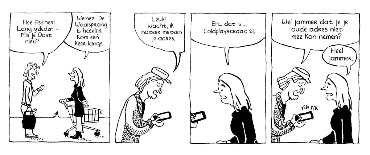 Hij bestaat echt, de Coldplaystraat... Een tekening van de vaste cartoonist van de Wijkkrant voor Nijmegen-Oost, Frank Schijven.