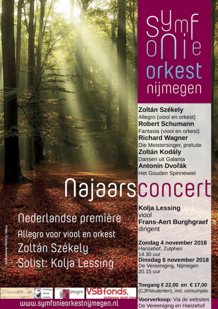 De Hongaarse componist Zoltán Székely woonde enige jaren in Nijmegen. Lessing vertolkt de solopartij in Székely’s ‘Allegro’, een stuk dat nog niet eerder in Nederland werd uitgevoerd.