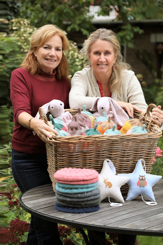 Caroline: "Ik ben al zestien jaar betrokken bij de Vereniging. Ik ben vroeger modeontwerpster geweest en heb een passie voor handwerken. Het is zo mooi om handgemaakte spullen uit Nederland te hebben. Eindelijk eens iets dat niet uit China komt. Hier heb je bijvoorbeeld een bamboe slaaphaas. We proberen ook zo duurzaam mogelijk te werken. Met gerecyclede producten: we krijgen heel veel garen en wol etc. van mensen die het thuis hebben liggen en er niets mee doen."