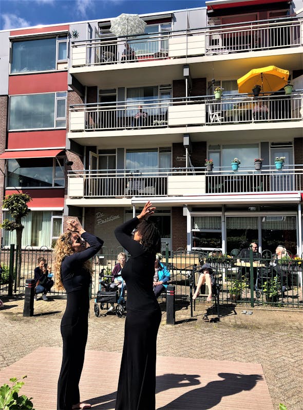 De Nachten van de Ommetjes, wandelingen door verschillende wijken in Nijmegen van optreden naar optreden, gingen zoals zoveel publieke activiteiten vorig jaar niet door. Afgelopen zaterdag werd eindelijk weer het eerste Ommetje in 20 maanden gehouden rondom het Oud Burgeren Gasthuis aan de Professor Cornelissenstraat. Bij deze 10e Ommetjes-editie liepen de bezoekers echter niet zoals gewoonlijk in groepen van voorstelling naar voorstelling, maar liepen de optredenden van locatie naar locatie: een AndersOmmetje, uiteraard alles in de buitenlucht. Het publiek, voornamelijk bewoners van het OBG, zat op stoeltjes op de terrasjes of hing over de balkons van het tehuis voor ouderen. Nijmegens eerste nachtburgemeester Doro Krol opende het AndersOmmetje met een blije welkomstgroet.
