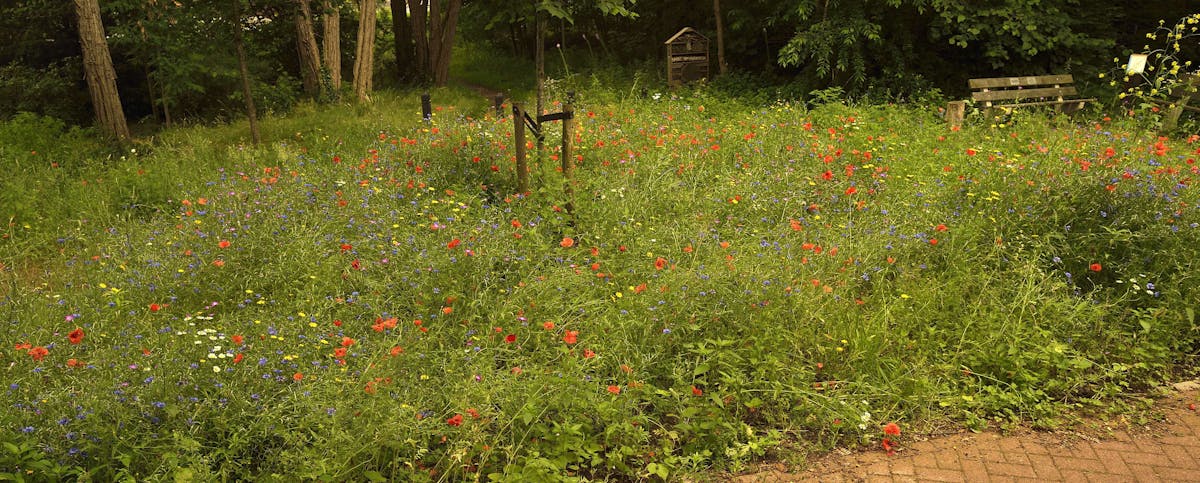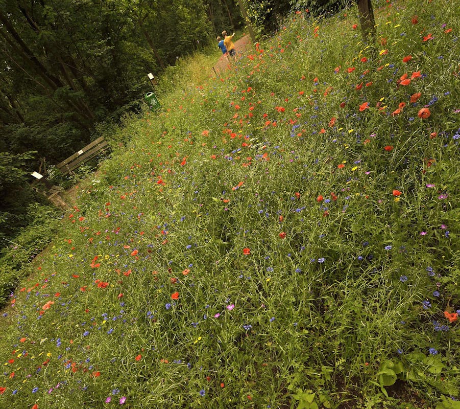 Rood, blauw, geel, wit, lila, roze, groen. Momenteel zijn er heel veel kleuren te zien in deze wijktuin. Misschien ook nog oranje, in een ander seizoen. Het zoemt er van de insecten en het ruikt er heerlijk naar bloemen.