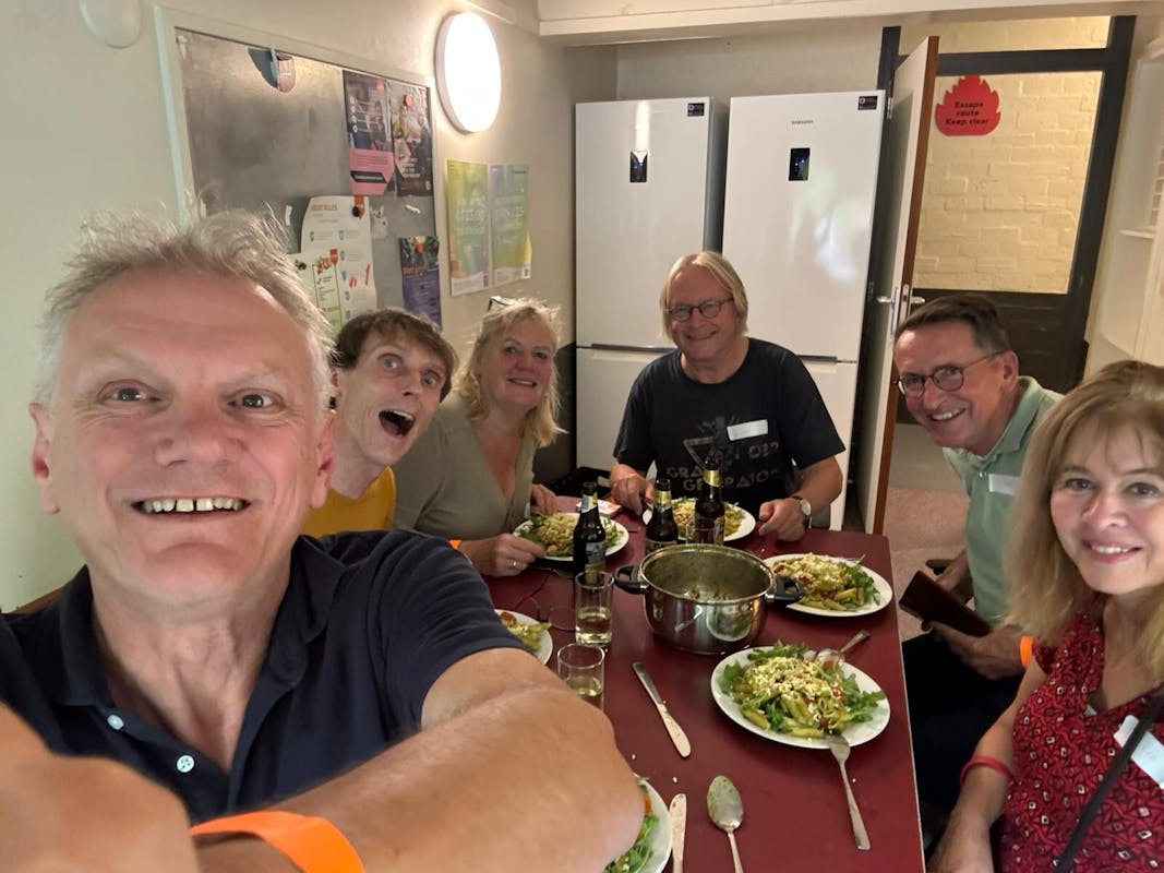 Met etenstijd gingen we terug naar ‘onze’ gang om te koken. De SSHN kent haar studenten, dus had zij alvast gezorgd voor de ingrediënten: pasta, een potje pesto, geraspte kaas, tomaatjes en bier in de koelkast. Heerlijk! Als vanouds!