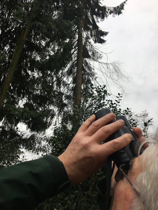 Gelukkig mocht ik van de vrije vogelaar Tjeu zijn verrekijker lenen en heb met eigen ogen 5 ransuilen geteld. De gevlekte veren en de oren met een pluimpje eraan, waren zo dichtbij dat ik ze haast kon aan raken. Tjeu heeft ze 8 weken geleden al ontdekt met zijn vogelclub de vrije vogels. Rond schemertijd hadden zij 27 ransuilen geteld. Wie uitkijkt kan ze ook ontdekken door de vele uilenballen en de uilenpoep.