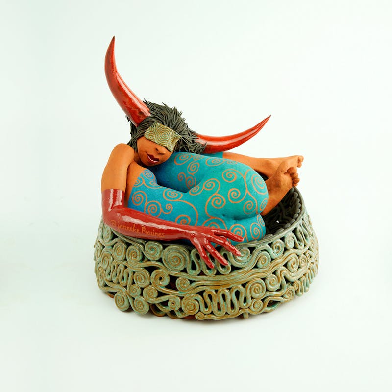 Chris de Geus is de oprichtster van BY CHRIS Tassen. Wat ooit begon op een zolderkamer met het maken van een speciale tas, is uitgegroeid tot het speciale Dutch Design label. Een duurzaam product dat met liefde voor Italiaans leer en gekleurde garens is gemaakt. De figuratieve, bronzen beelden van Wilfrie Linssen ontstaan door observatie van houding en gedrag van mens en dier of door verdieping in een bepaald thema uit de filosofie of mythologie. De houten objecten van Suzan Doornbos zijn verfijnd en hebben een minimalistisch design. In het kleinste kamertje van het kasteel vindt u de sieraden van Marlous Arnold. Prachtige draagbare kunstobjecten in zilver, goud en mineralen.