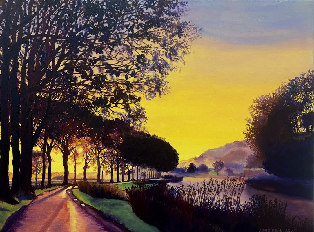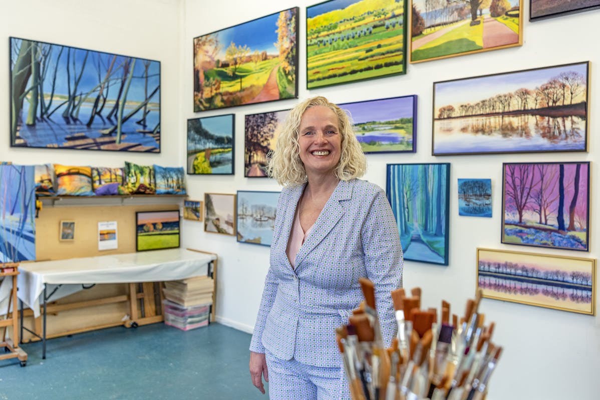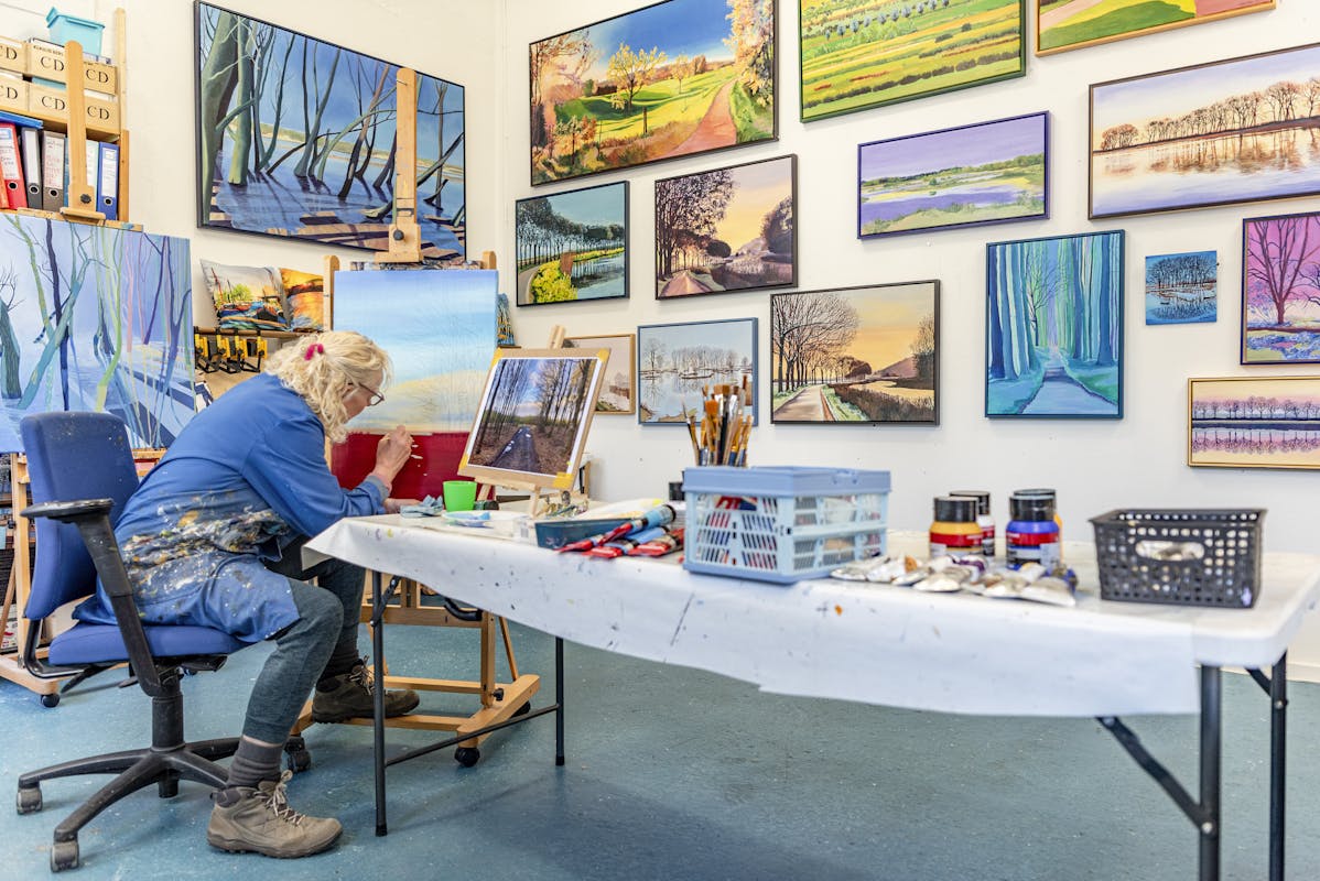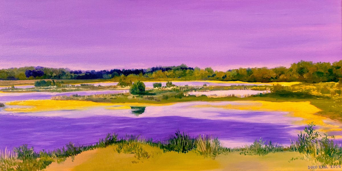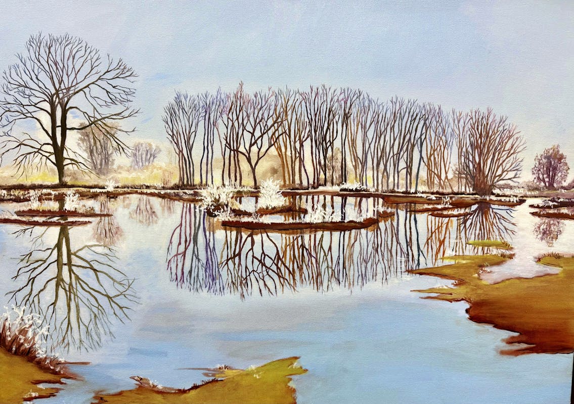Kunstenaar Doro Krol volgde in haar jonge jaren de vrije richting van de kunstacademie in Arnhem. Zolang zij zich kan herinneren wilde ze in de natuur zijn en kunst maken. Het maakt Doro dan ook blij dat de Ooijpolder dicht bij haar atelier ligt. Het mooie en afwisselende landschap van de Ooij levert haar onuitputtelijke inspiratie op. Iedere keer ziet zij nieuwe kleuren, lichtinvallen en details. Elk seizoen brengt haar tot nieuwe schilderijen. Langzaamaan probeert ze meer verstilling in haar landschapskunst te brengen. Kleur en licht spelen hierin de hoofdrol. Midden in het voorjaar, met Pasen, wanneer de natuur opnieuw ontwaakt, voelt ook Doro’s werk als een uitnodiging om opnieuw te kijken. Haar werk is herkenbaar, vrolijk en kleurrijk. Wie het ziet, wordt er blij van.