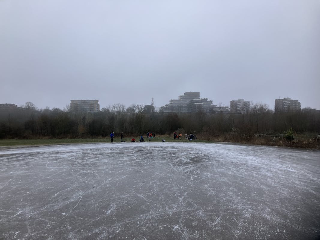 Er is natuurijs! Geweldig om buiten weer rondes te kunnen schaatsen. Met zicht vanuit de Ooij op de stad en de heuvelrug is het echt genieten.