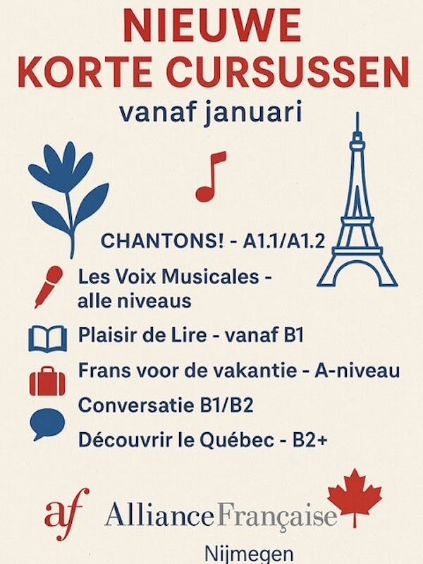 Wij bieden vanaf januari 2026 een kleine waaier korte cursussen aan. Op verschillende niveau’s. Via onze website kunt u zich inschrijven. Laat u verrassen door de keuze. c...