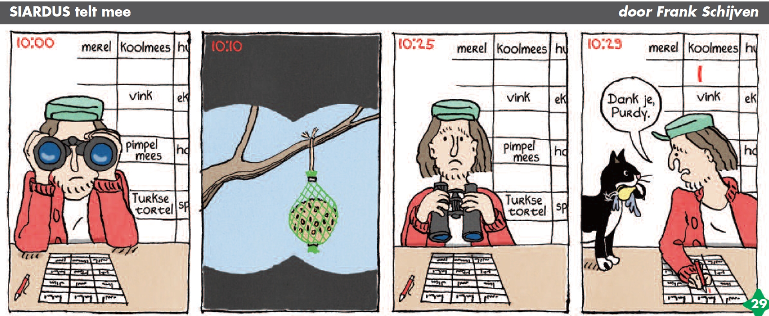 In het weekend van 27 en 28 januari kun je weer meedoen aan de landelijke tuinvogeltelling van de Vogelbescherming. Instructies: tel een half uur lang alle vogels in je tuin en noteer de soorten en aantallen. Negeer overvliegende vogels. Noteer tijd en weer.
